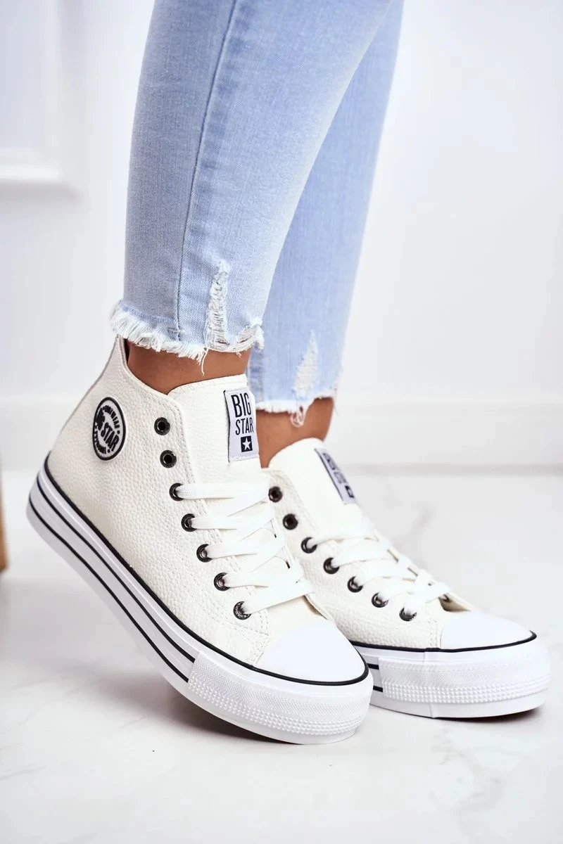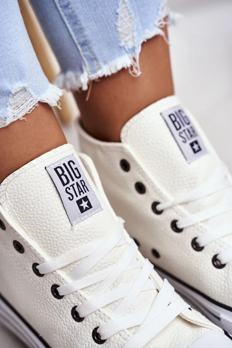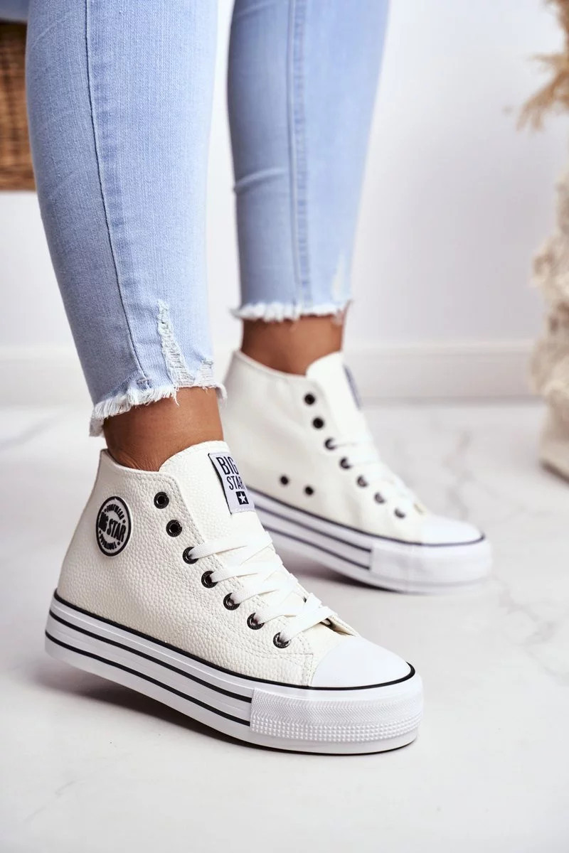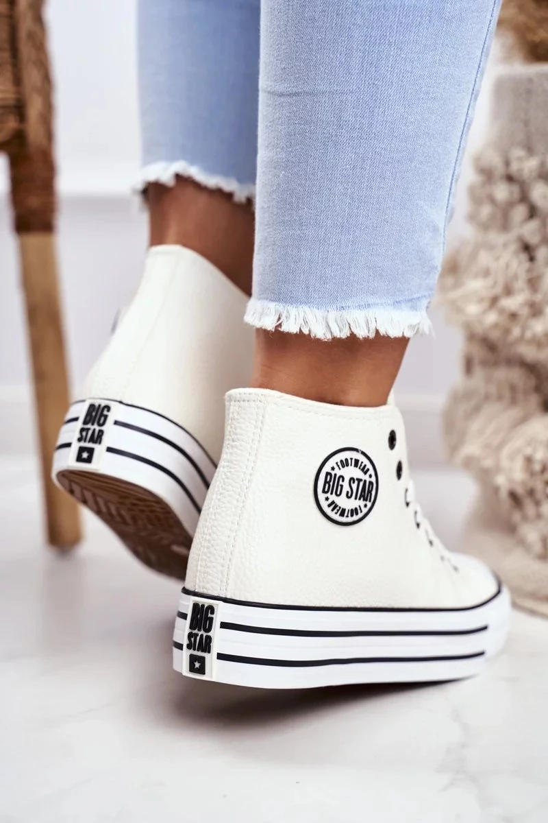Nadčasové tenisky BIG STAR! Klasický vzor v kombinaci se silnou podrážkou je dokonalým receptem na praktické a originální boty. Vysoké tenisky, které budou vypadat úžasně s jakoukoli stylizací. Svršek je vyroben z ekologické kůže, zatímco stélka je z jemného textilního materiálu.
