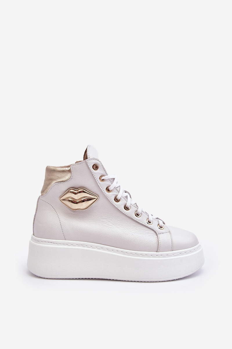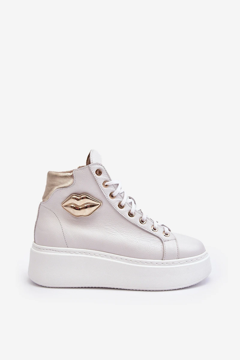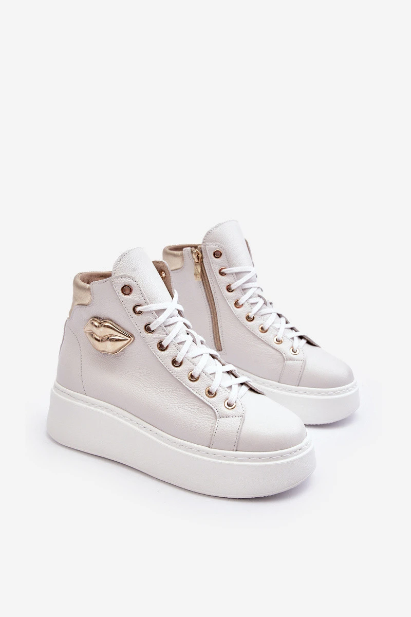 Tyto dámské vysoké tenisky jsou vyrobeny z přírodní kůže. Mají šněrování a zip na straně kotníku. Tento pohodlný model je umístěn na masivní platformě. Vložka je také vyrobena z přírodní kůže. Klasický vzor, pohodlný střih a módní ozdoba dělají z těchto tenisek něco výjimečného! Při výběru velikosti se řiďte tabulkou velikostí.