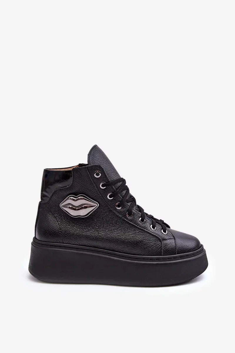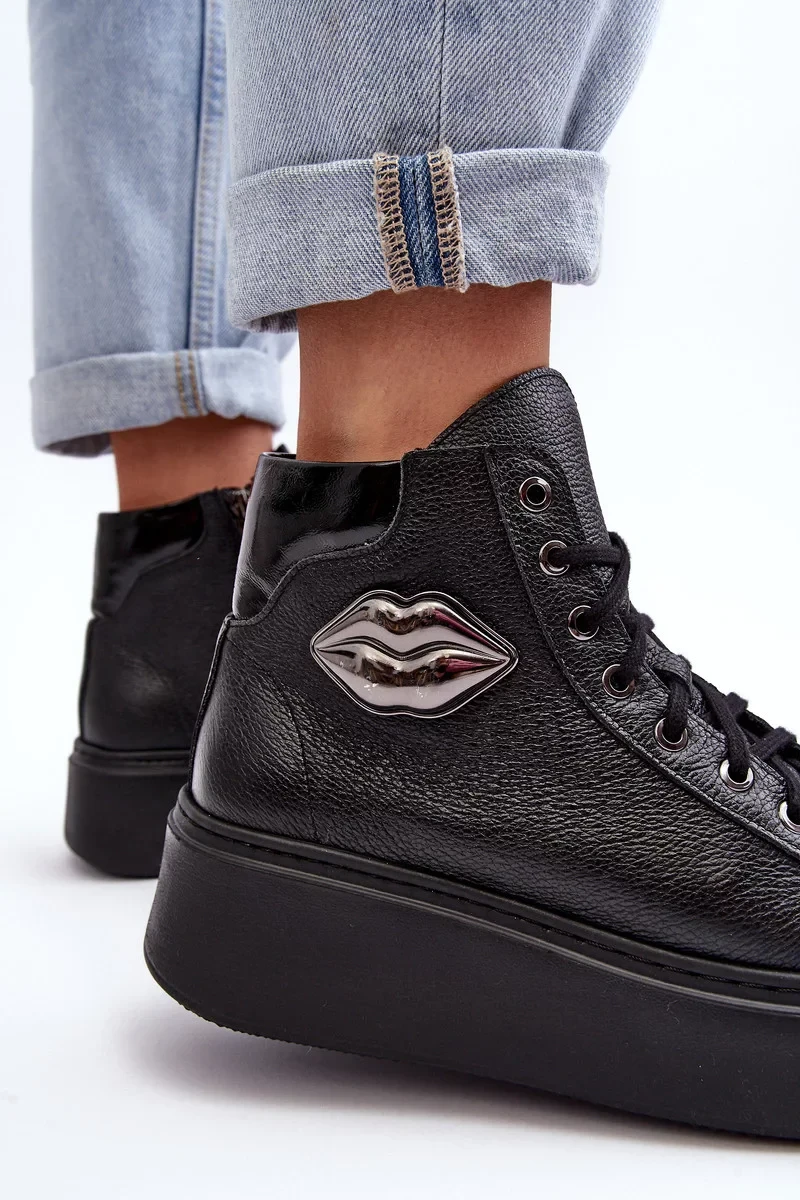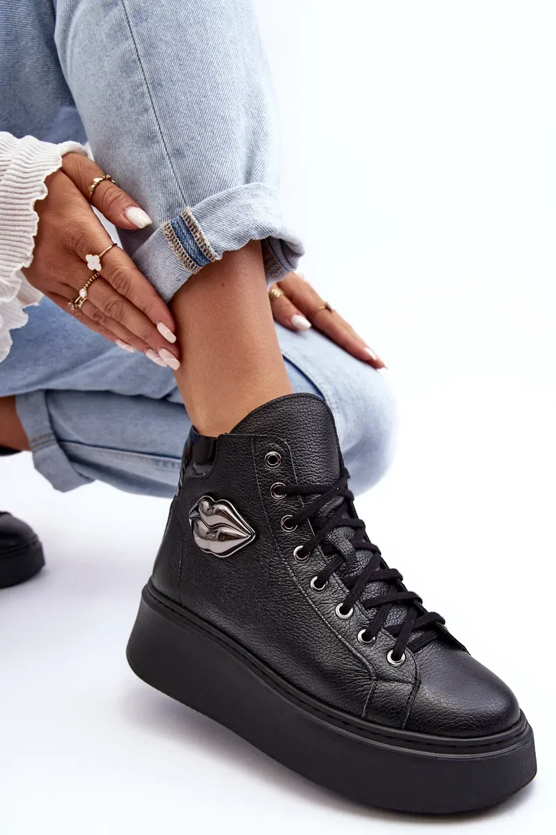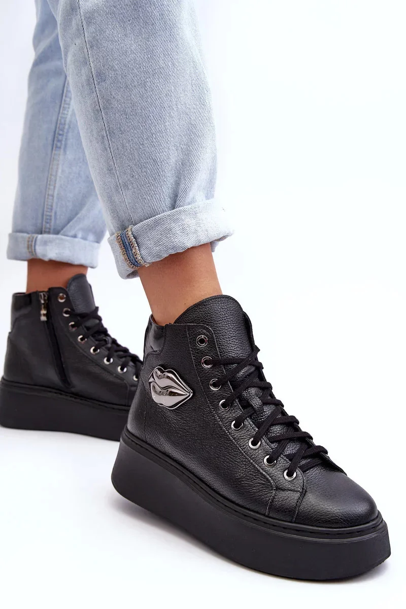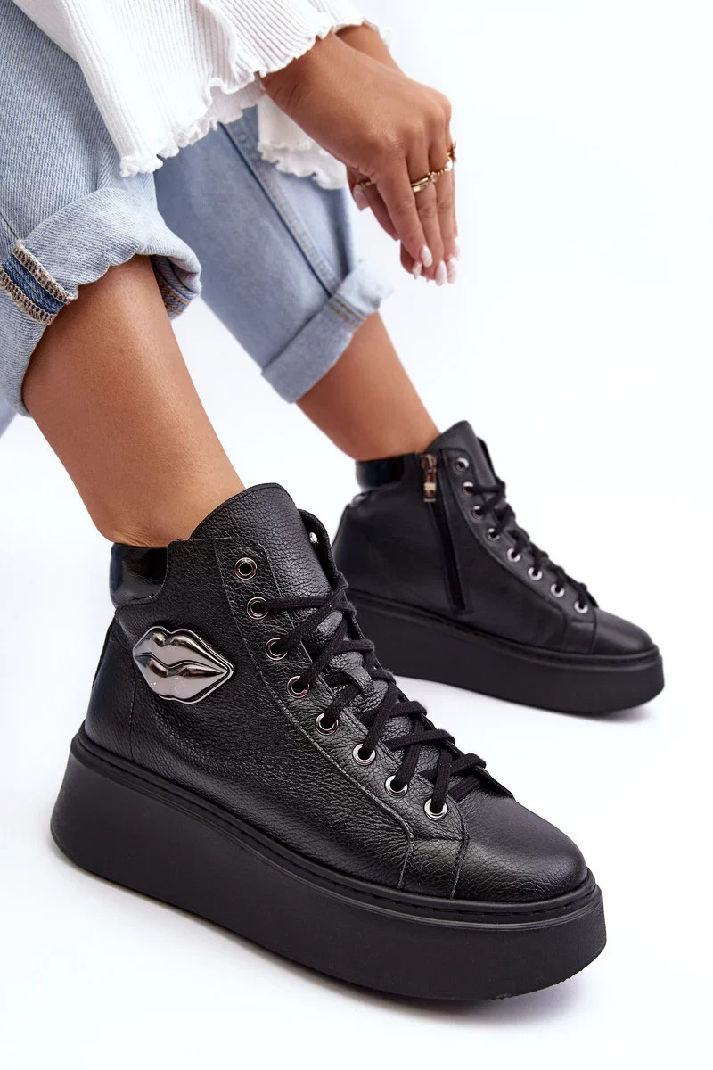 Dámské vysoké tenisky jsou vyrobeny z přírodní kůže. Mají šněrování a zip na boční straně svršku. Tento pohodlný model je namontován na masivní platformě. Stélka je rovněž vyrobena z přírodní kůže. Klasický design, pohodlný střih a módní zdobení tyto tenisky odlišují od ostatních modelů! Při výběru velikosti se řiďte tabulkou velikostí.