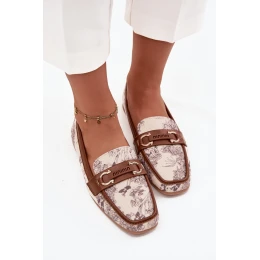 Stylové mokasíny Evelora v béžovo-hnědém provedení zaujmou originálním vzorovaným designem a elegantním ozdobným prvkem na nártu. Perfektní volba pro ženy, které hledají kombinaci pohodlí a módního vzhledu.