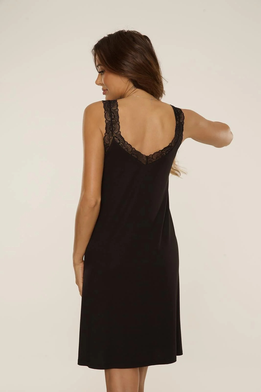 - výstřih, ramínka a horní linie zad z prolamované krajky