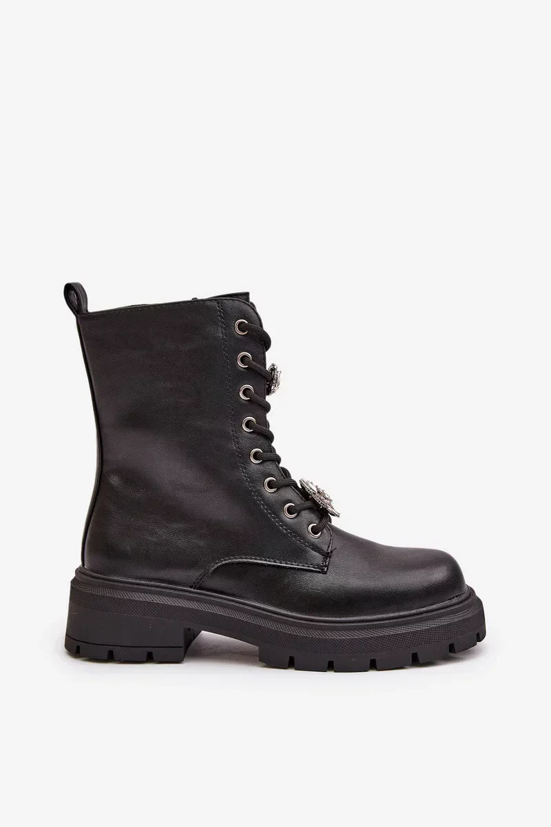 Dámské Workery Kotníkové Boty z Eko Kůže s Odznaky Černé Kristines