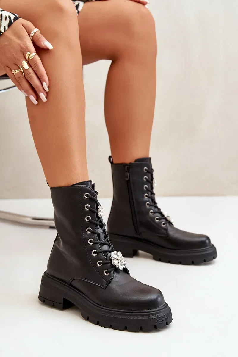 Osazené na plochém podpatku, se zaoblenými špičkami, zajišťují pohodlí při každodenním nošení. Model zapínaný na zip z boku pro snadné oblékání, a dodatečné šněrování s roztomilými připínáčky jim dodává výjimečné kouzlo. Ideální na podzimní a zimní stylizace, skvěle se hodí k různým outfitům na chladnější dny. Při výběru velikosti se prosím řiďte tabulkou velikostí.36-23,5/37-24/38-24,5/39-25,5/40-26/41-26,5 cm