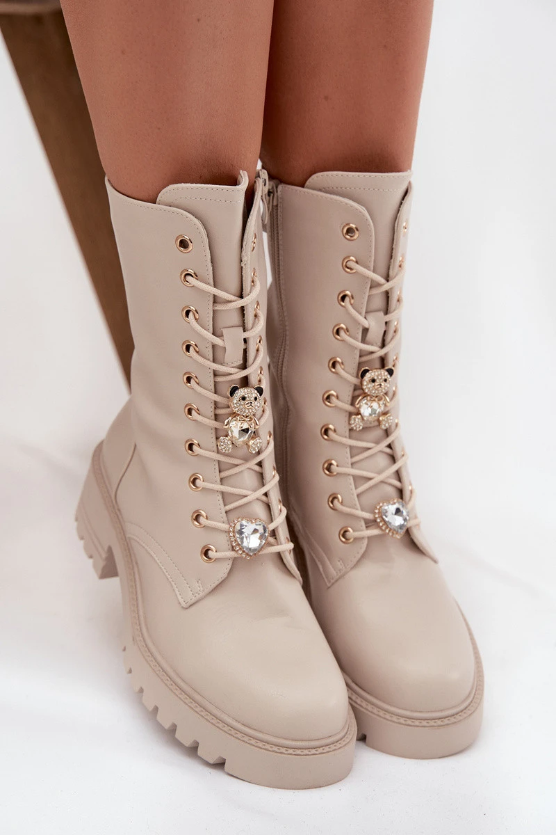 Dámské workery s přezkami Medvídek Srdce Béžové Iravine