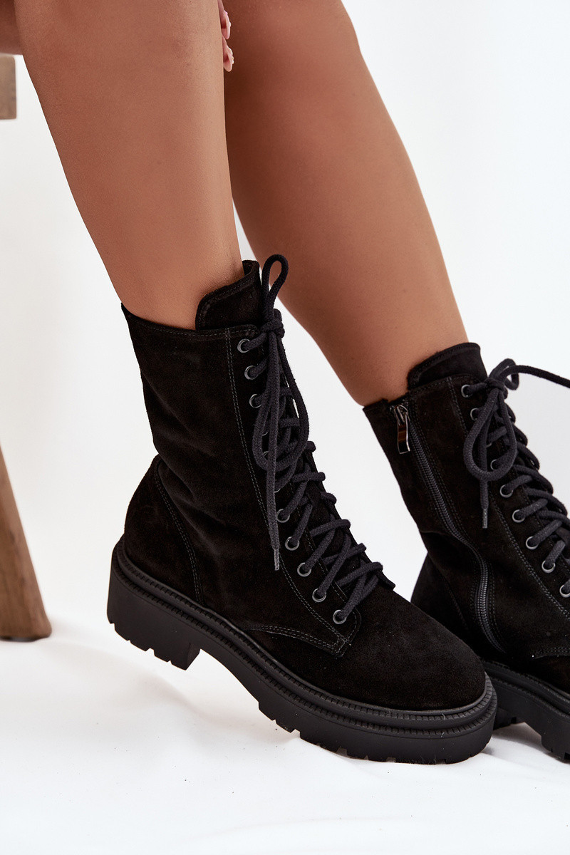 Dámské workery z přírodní semišové kůže vyhřívané Zazoo 4213 Černé
