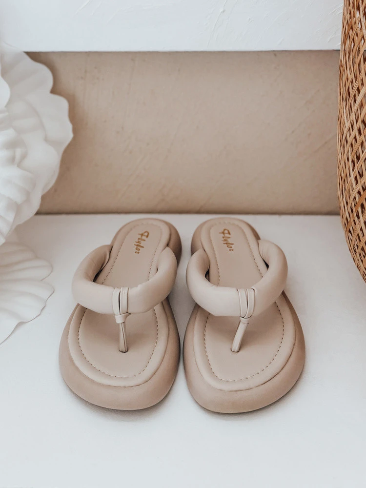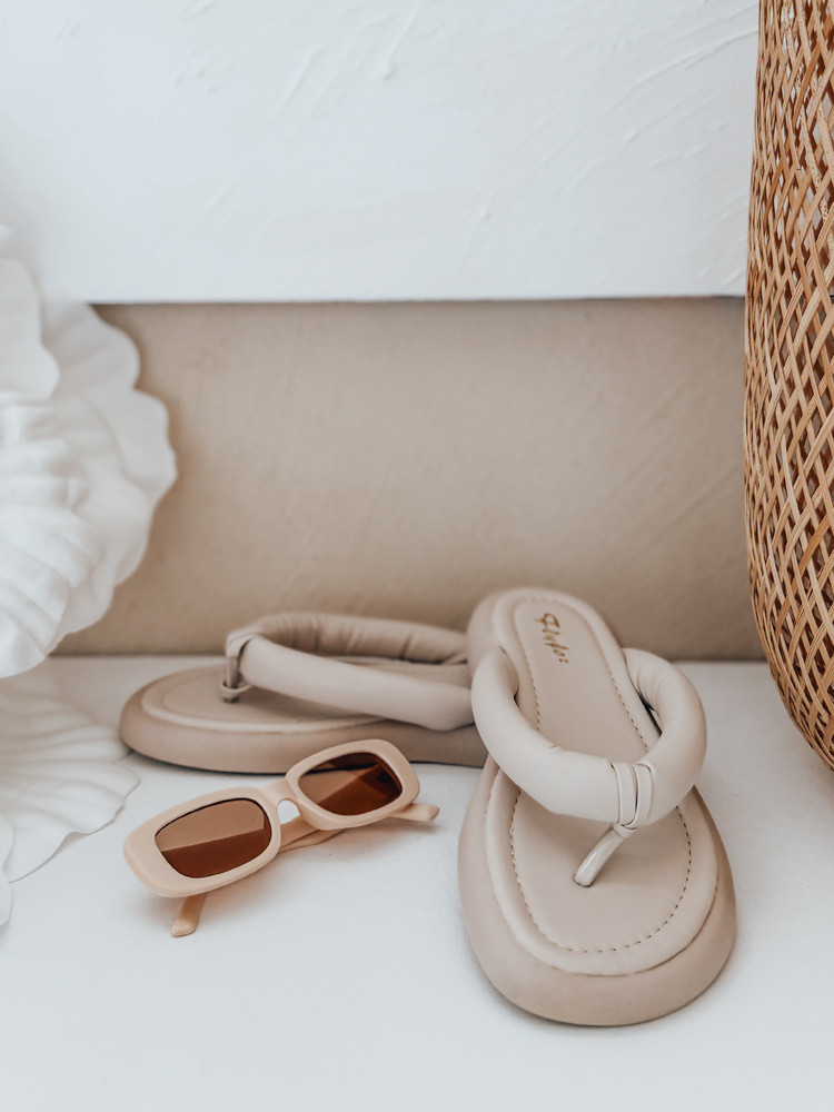 Klapki damskie na płaskiej podeszwie z grubym paskiem i modnym designem typu japonki. Miękka, piankowa wkładka i szerokie paski zapewniają wygodę nawet podczas długich spacerów. Idealne do letnich stylizacji z sukienkami lub szortami. Obuwie doskonałe na upalne dni i wakacyjne wyjazdy.