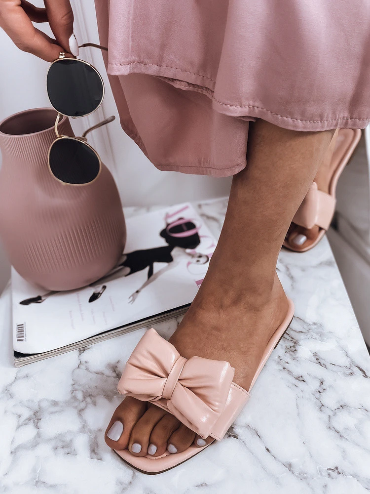 Jedinečné žabky z imitace kůže jsou ideální volbou pro komponování mnoha originálních outfitů v horkých letních dnech. Model se vyznačuje velkou mašlí uprostřed pásku. Boty se budou nejlépe hodit ke vzdušným šatům, krátkým šortkám nebo sukním. K dostání v několika barevných provedeních.