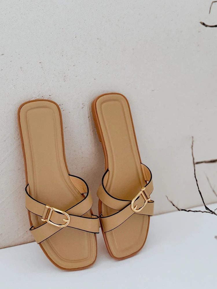 Klapki damskie wykonane z wysokiej jakości skóry ekologicznej, z dekoracyjną klamrą i krzyżującymi się paskami. Stylowy design i uniwersalny charakter sprawiają, że idealnie komponują się zarówno z sukienką, jak i jeansami. Lekkie, wygodne i modne – świetne na wiosenne dni.