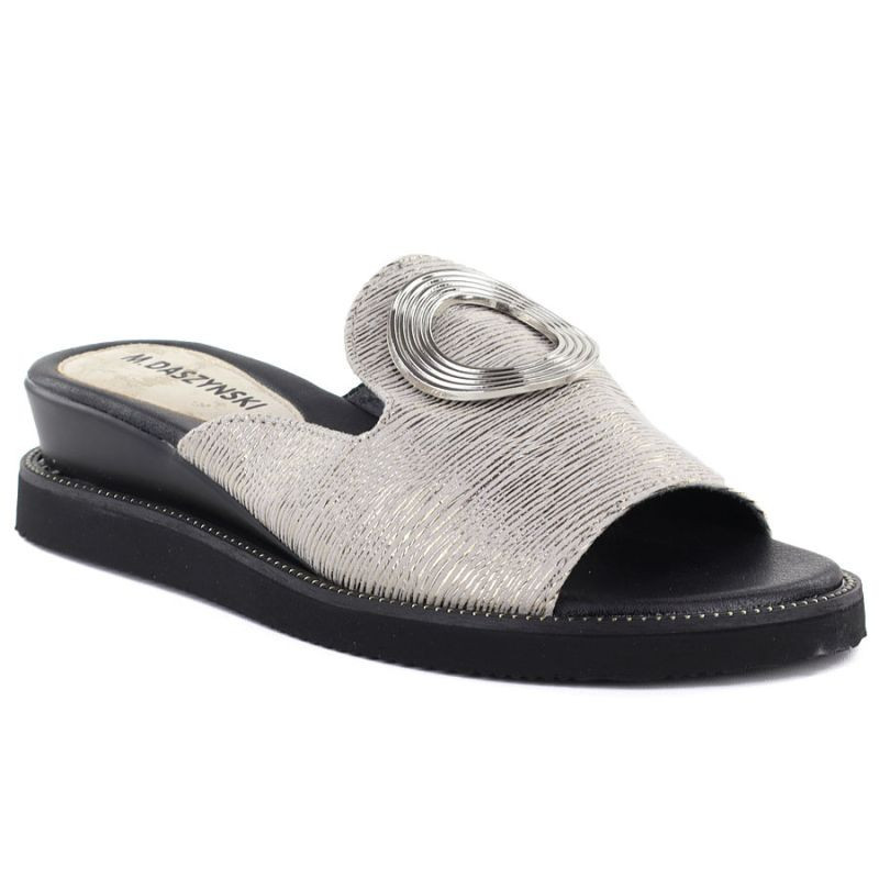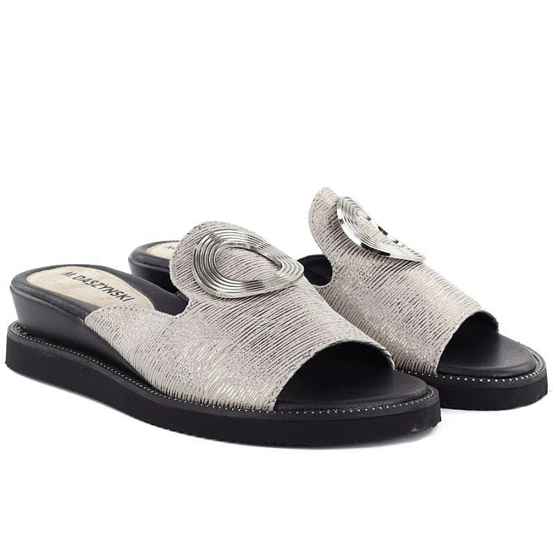 Dámské žabky na nízkém podpatku ve stříbrné barvě M.Daszynski MR2267-7