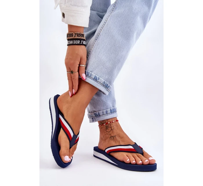 Dámské žabky na platformě Big Star LL274779 námořnická modrá