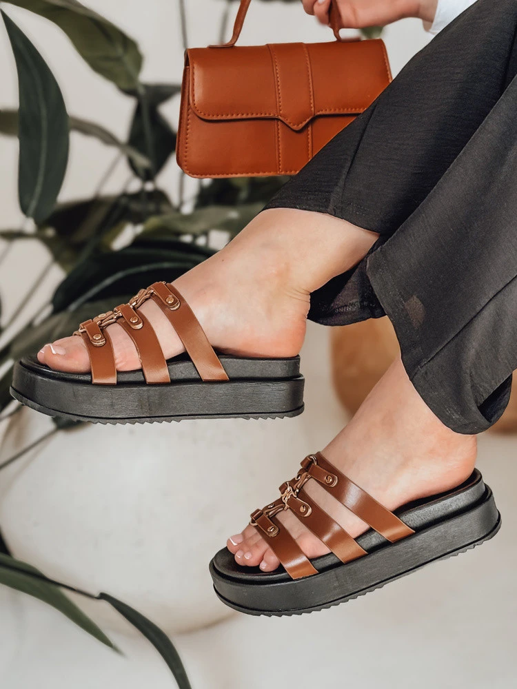 Dámské žabky na platformě PLATOFI camel FashionStreet ZY0880