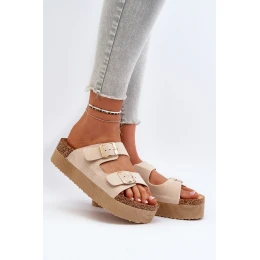Dámské žabky na platformě s přezkami béžové Lolpey
