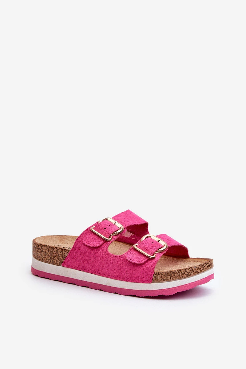 Dámské žabky na platformě s přezkami z ekokoženky fuksiové Ursila