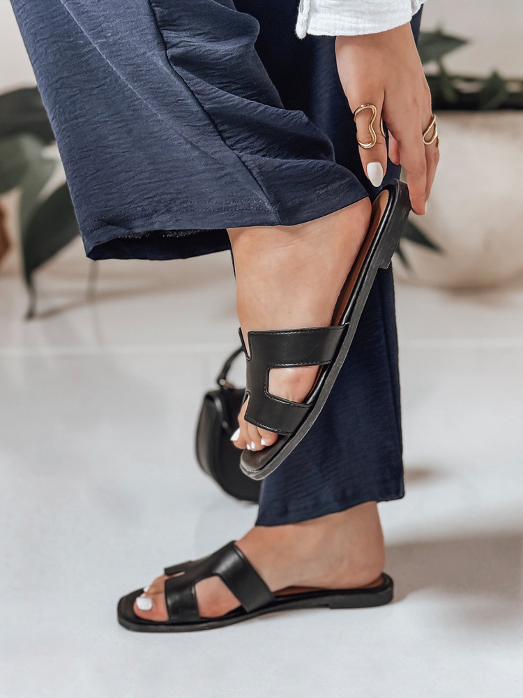 Klapki damskie z ekoskóry o nowoczesnym fasonie z wcięciami to idealne połączenie wygody i stylu. Komfortowa wkładka oraz płaska podeszwa sprawiają, że świetnie sprawdzą się w codziennych stylizacjach. Minimalistyczny design pasuje do każdej garderoby, szczególnie w sezonie wiosennym lub letnim.