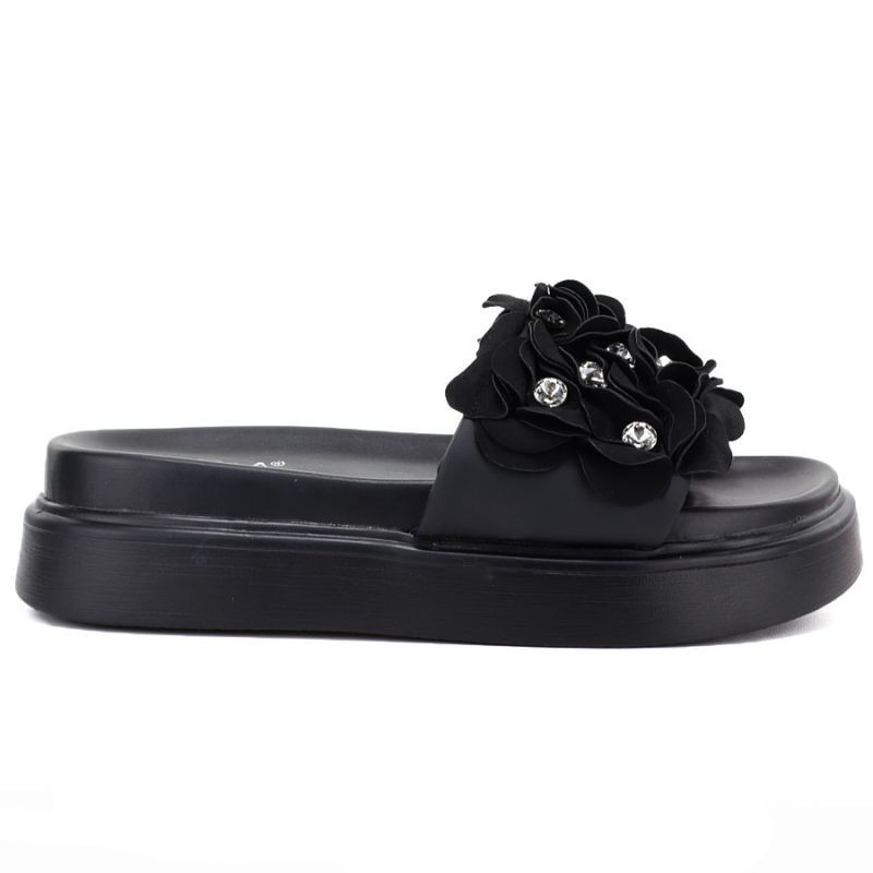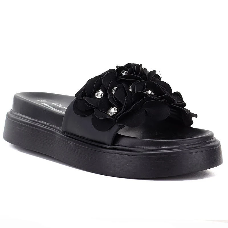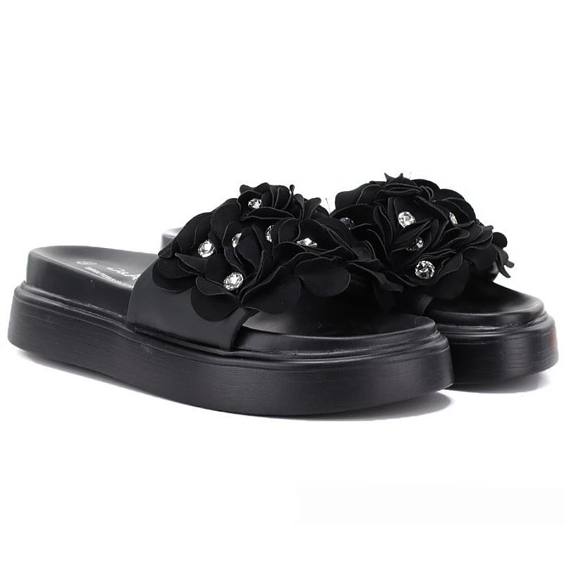 Dámské žabky s květinovou platformou černé by S.Barski model 22117605 - D&A