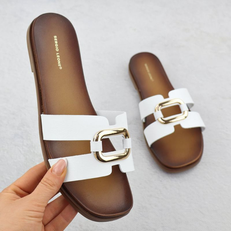 Dámské žabky s ornamentem bílé Sergio Leone SK077H