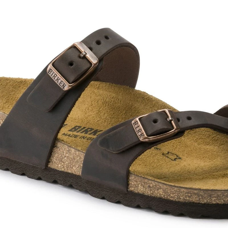 Dámské žabky z naolejované nubukové kůže s velurovou značkou, která zajišťuje odolnost a styl. stélka z korku a latexu podporuje chodidlo a podrážka z pěny EVA tlumí kroky.