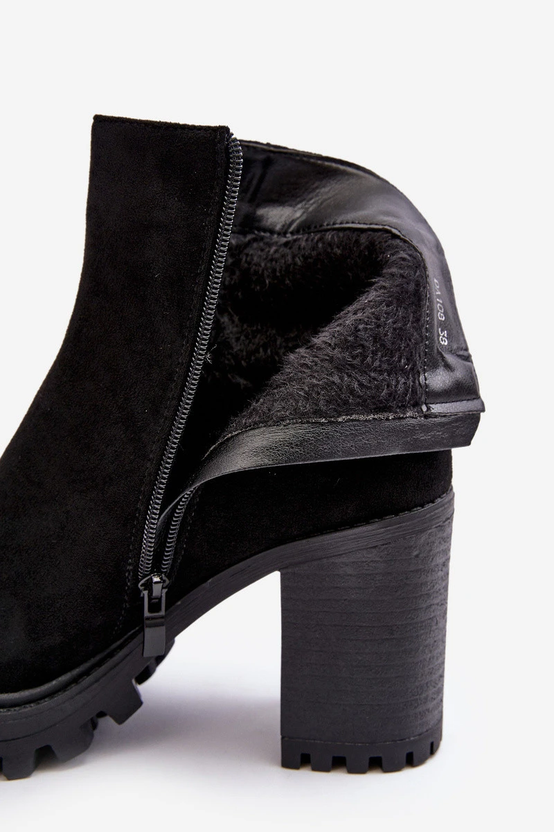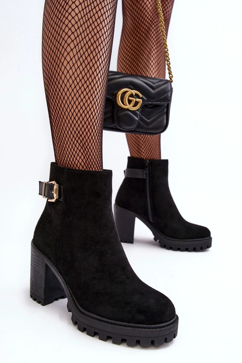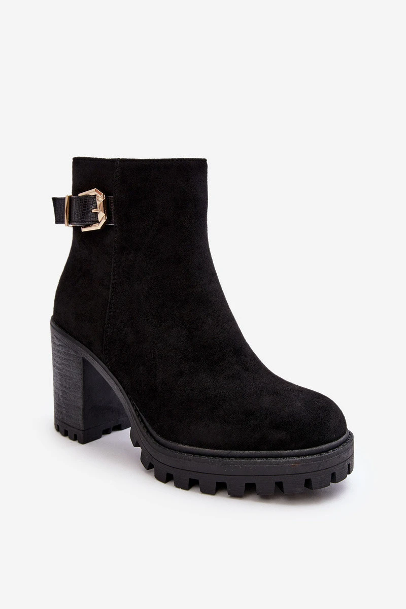 Dámské Zamszové Boty Na Sloupku s Ozdobou Černé Menoria