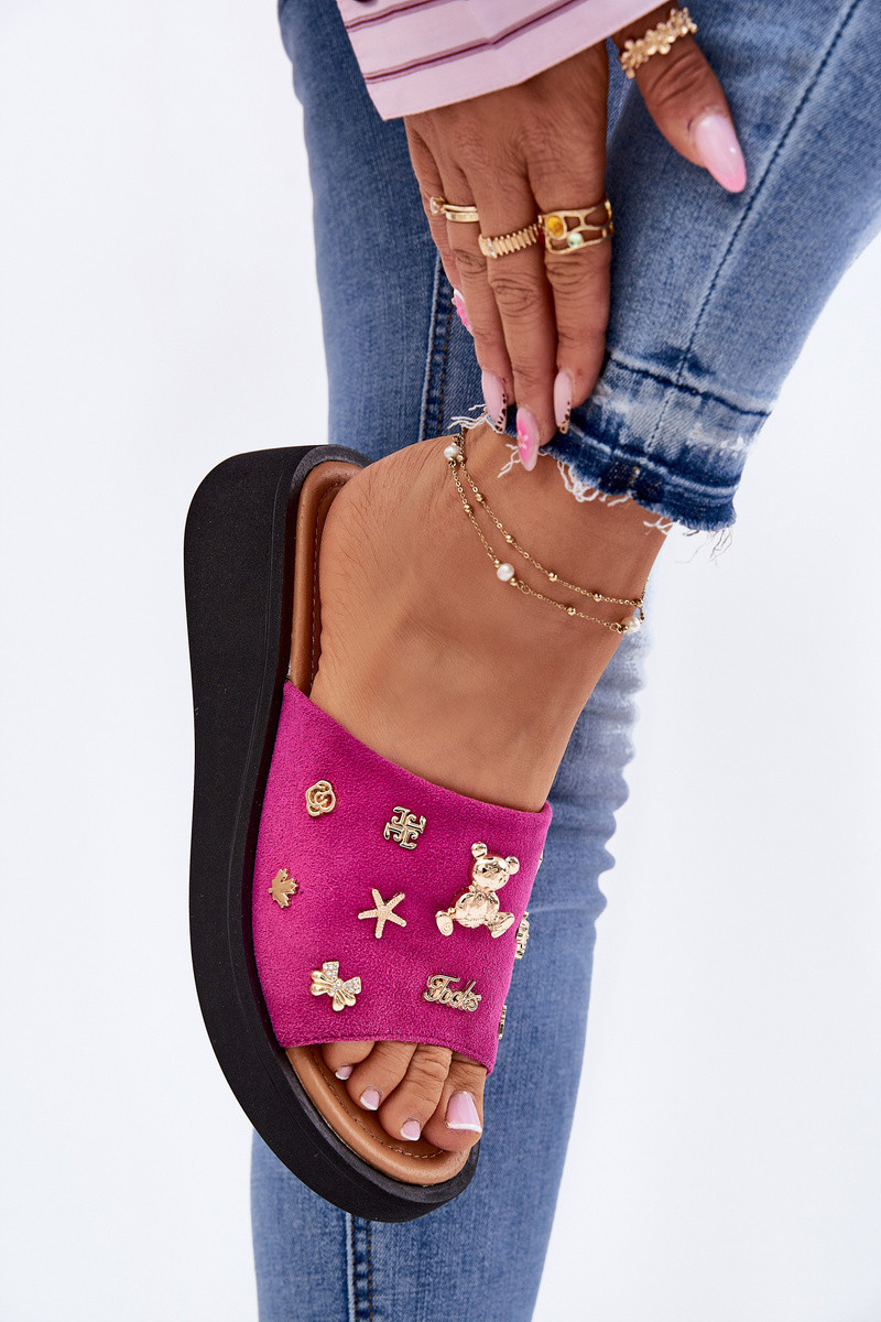 Dámské Zamszové Pantofle S Fuchsie model 21697716 - VINCEZA