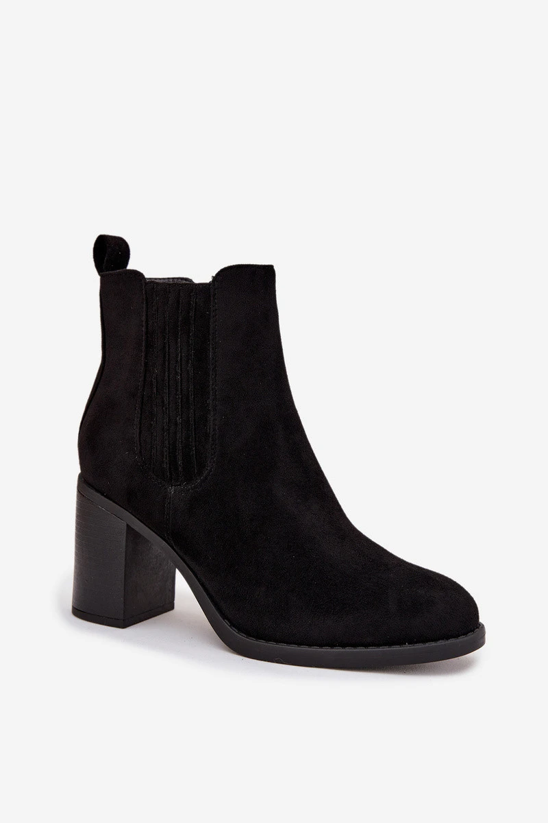 Stabilní sloupkový podpatek poskytuje jistotu a opticky prodlužuje nohy.
