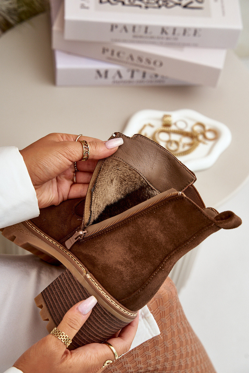 Dámské Zateplené Botky Na Podpatku Eko Semišové Hnědé model 21669094 - Boto