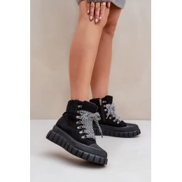 Dámské Zateplené Botky Trapery Na Platformě Černé model 21680175 - EVENTO