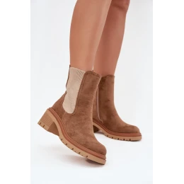 Dámské zateplené boty na klínovém podpatku tmavě béžové model 21706922 - Boto