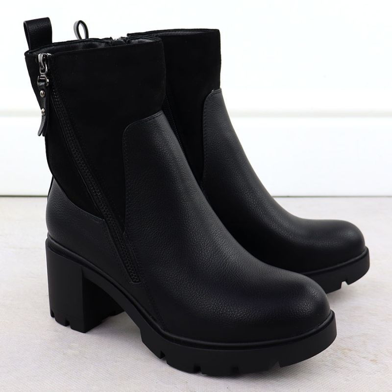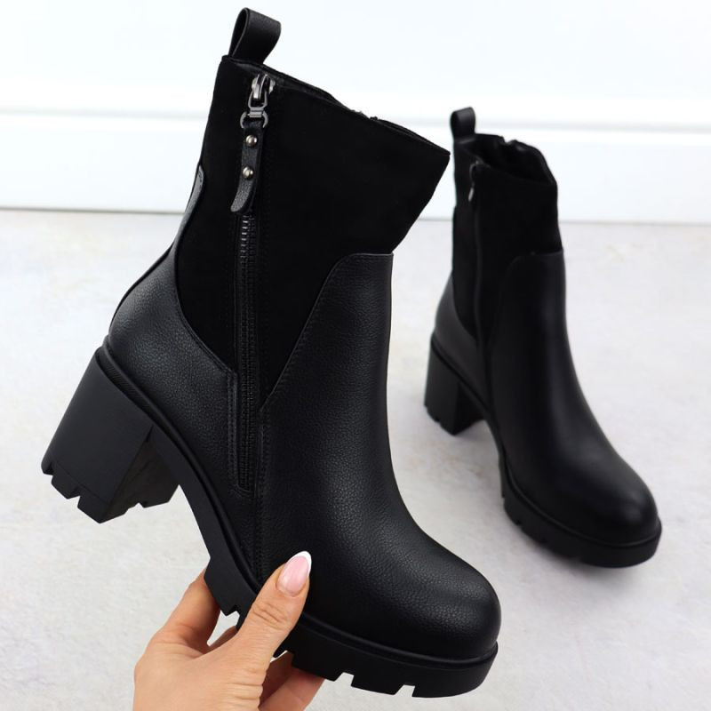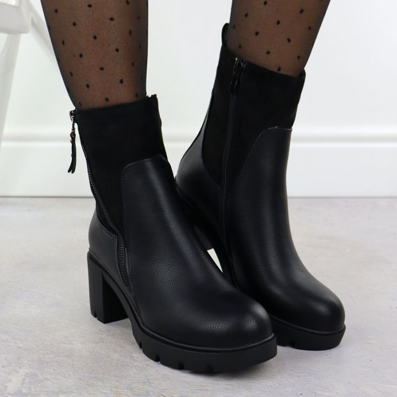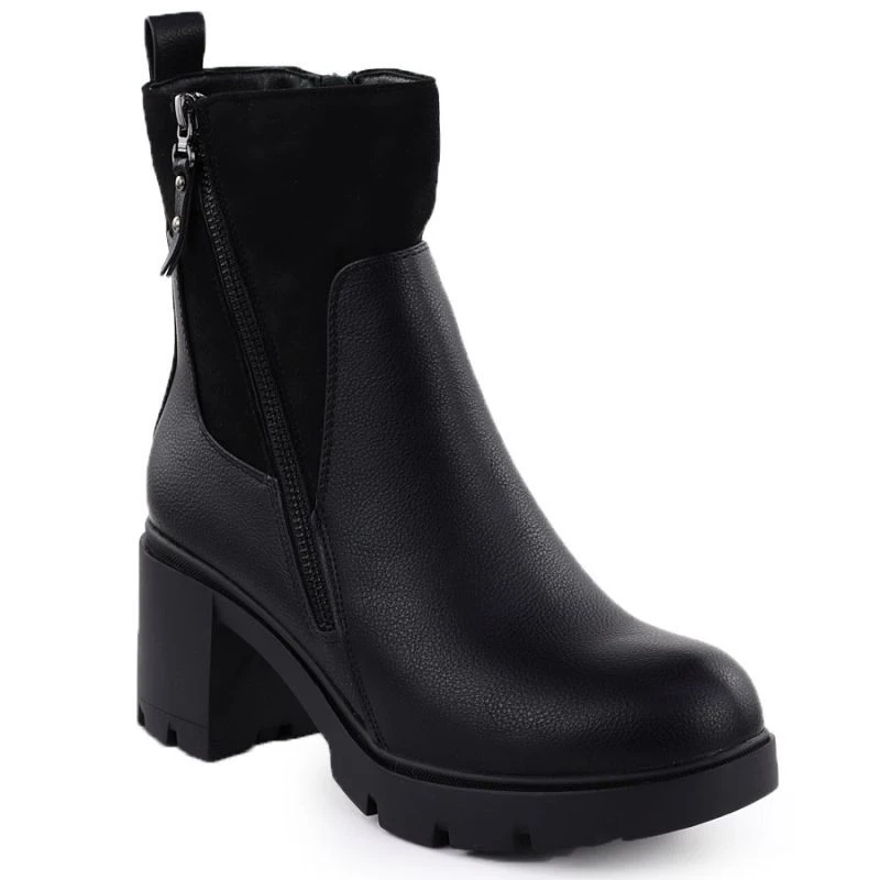 Dámské zateplené boty na podpatku se zipem černé M.Daszynski 23108