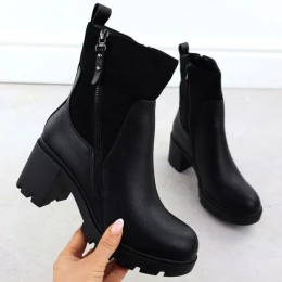 Dámské zateplené boty na podpatku se zipem černé M.Daszynski model 21905636 - M. Daszyński