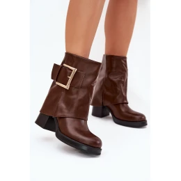 Dámské Zateplené Boty Na Podpatku Se Zlatou Sponou Hnědé Milira
