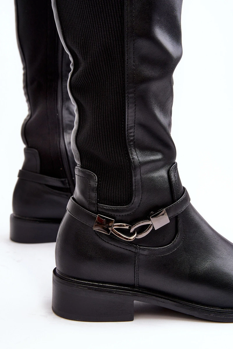 Dámské zateplené koleno vysoké boty SBarski HY07-329 Černé