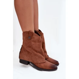 Dámské zateplené kotníkové botky kovbojky na sloupku – camel Sylvette