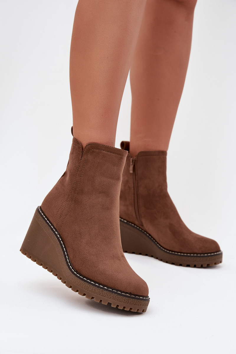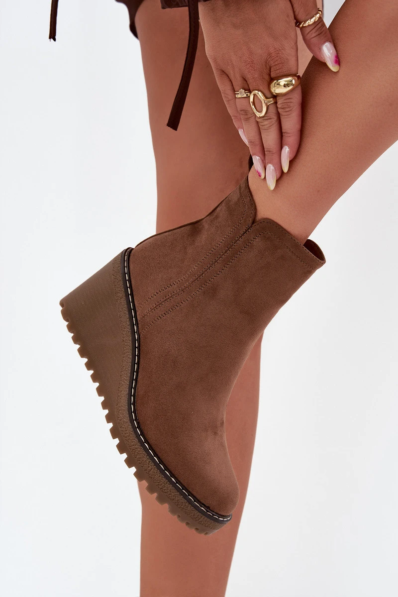 Dámské zateplené kotníkové botky na klínku z eko semiše – hnědé Mavona