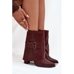 Dámské zateplené kotníkové botky na sloupku s ohrnovací manžetou a přezkou – bordó Ylenara
