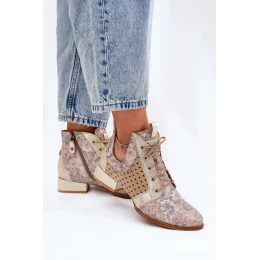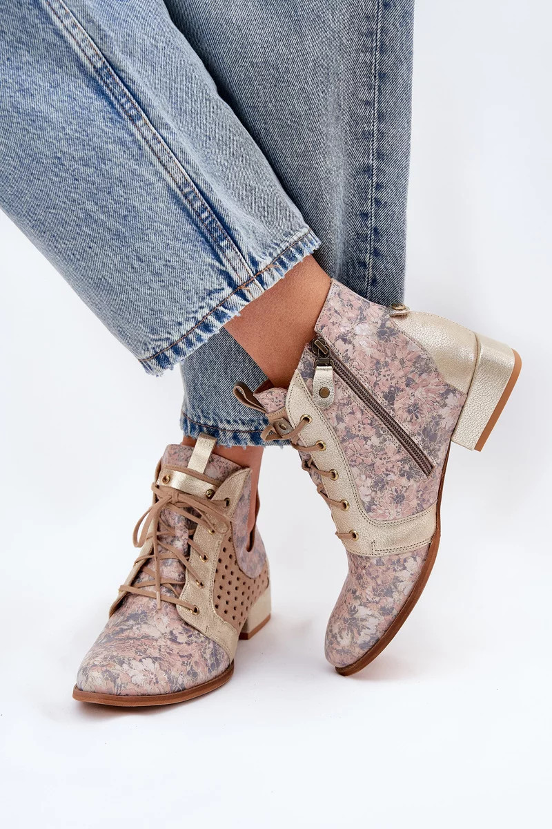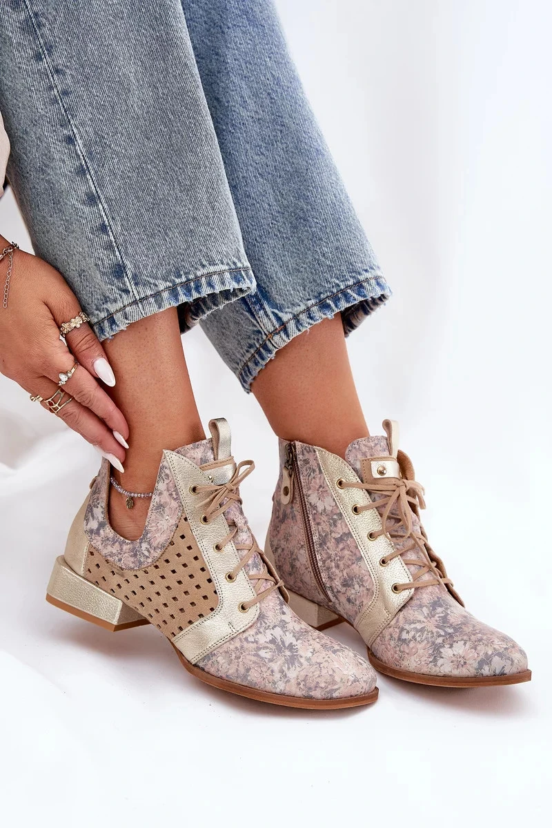 Dámské zateplené kotníkové botky z kůže – béžovo-zlaté Maciejka