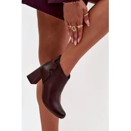 Dámské zateplené kotníkové botky z kůže na sloupku – bordó Ivessara