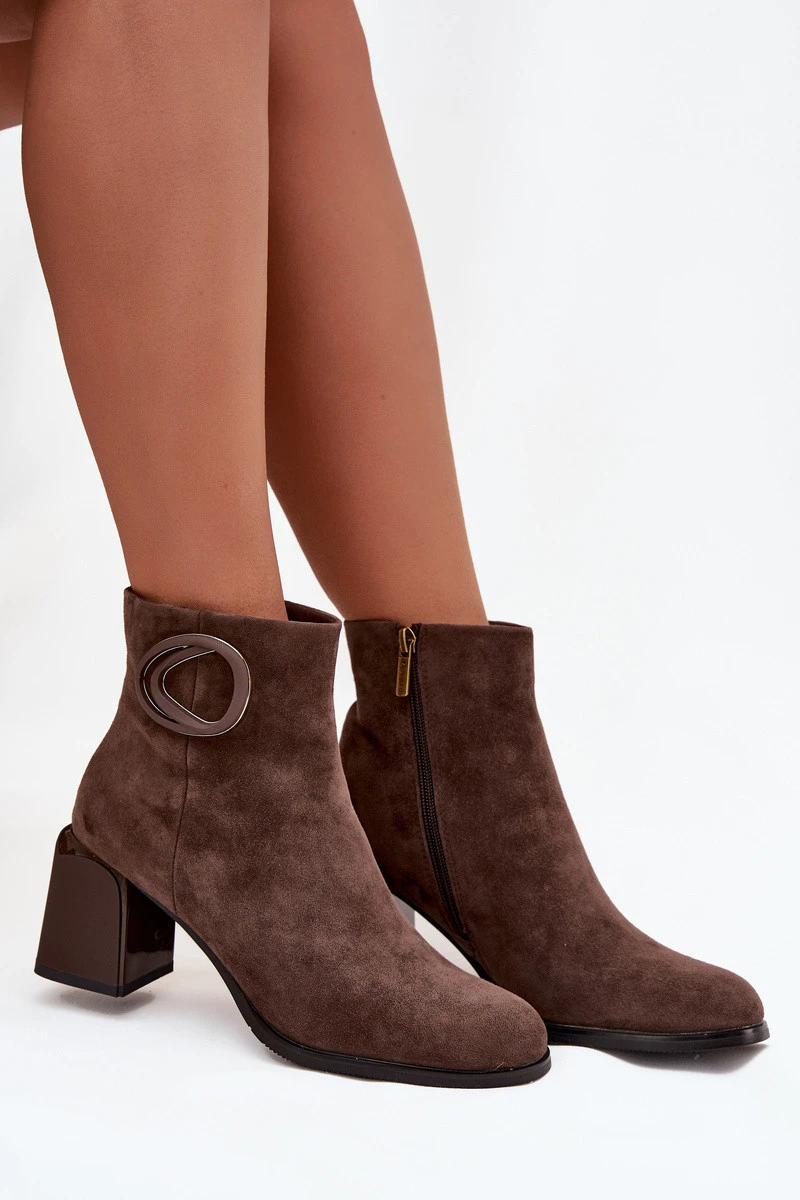 Dámské zateplené kotníkové botky z semiše na sloupku s ozdobným detailem – hnědé Artiker