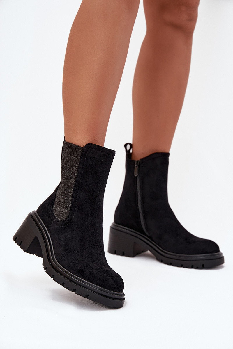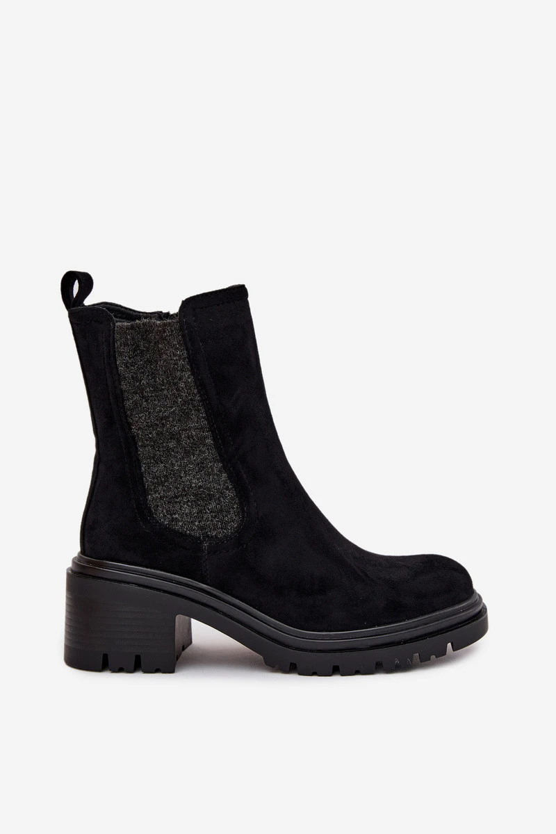 Dámské boty Chelsea vyrobené z eko semiše jsou klasickou volbou na chladnější dny. Jsou usazeny na blokovém podpatku, což zajišťuje pohodlí a stabilitu. Zaoblené špičky dodávají jemný charakter a vnitřek vyhřívaný obuvnickým rounem zaručuje teplo a pohodlí po celý den. Zapínání na zip umožňuje rychlé obouvání a svlékání. Ideální pro každodenní stylizace. Při výběru velikosti se prosím řiďte tabulkou velikostí. Při výběru velikosti se řiďte tabulkou velikostí.