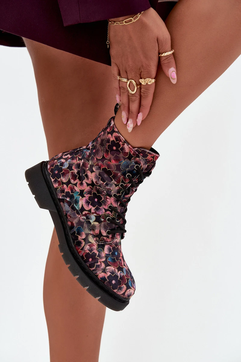 Dámské kotníkové boty značky Artiker jsou návrhem, který přitahuje pozornost a zdůrazňuje individuální styl. Umístěné na ploché podrážce, zajišťují pohodlí a stabilitu při každodenním nošení. Model kombinuje praktické šněrování s bočním zipem, což usnadňuje obouvání a přizpůsobení tvaru nohy. Vnitřek je vyhřívaný, což zajišťuje komfort a teplo v chladnějších dnech. Největší předností tohoto modelu je obuv zdobená mnoha barevnými květinami, které dodávají obuvi výjimečný charakter a odlišují ji od klasických tvarů. Jsou to boty, které se skvěle hodí jak k volnočasovým stylům, tak jako originální doplněk odvážnějších outfitů. Při výběru velikosti doporučujeme řídit se tabulkou velikostí. Při výběru velikosti se řiďte tabulkou velikostí.