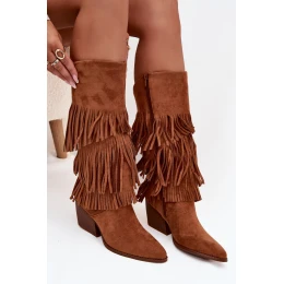 Dámské zateplené kovbojky s třásněmi Brivina – camel