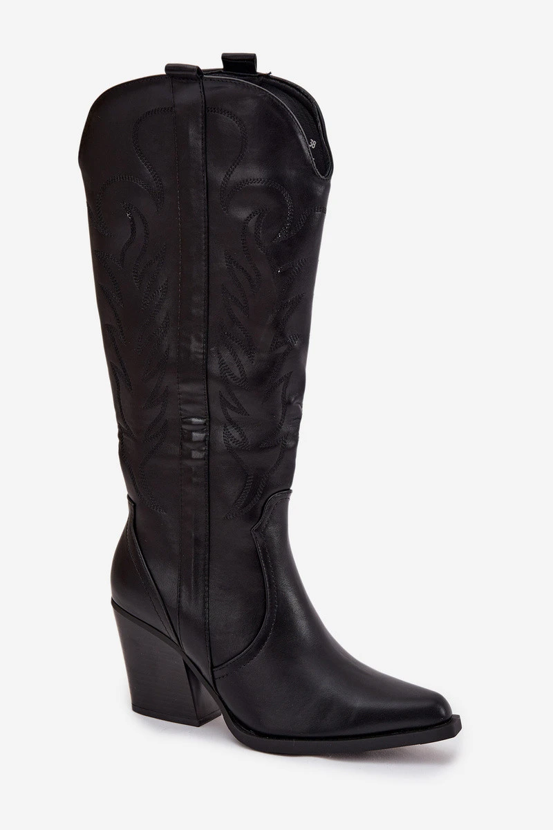 Dámské zateplené kozačky kovbojky na podpatku Zareen – černé, eko kůže