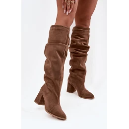 Dámské zateplené kozačky na podpatku Zazoo – světle hnědé, pravý semiš