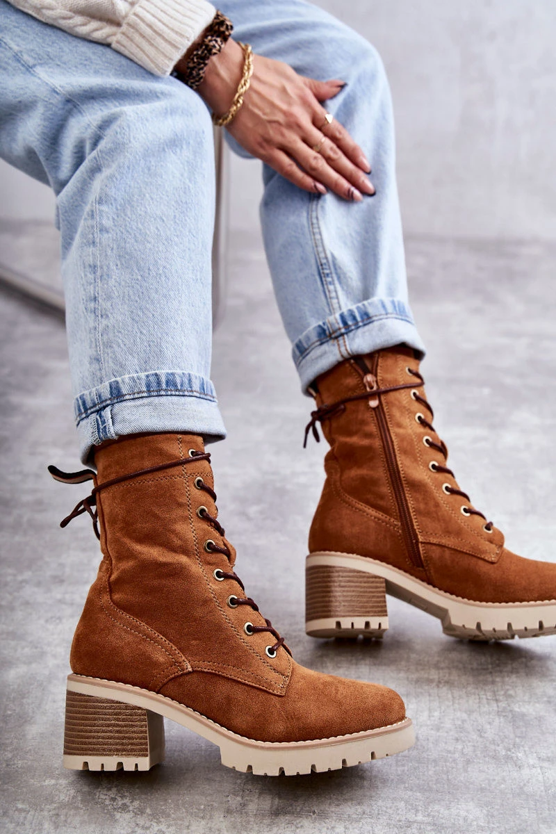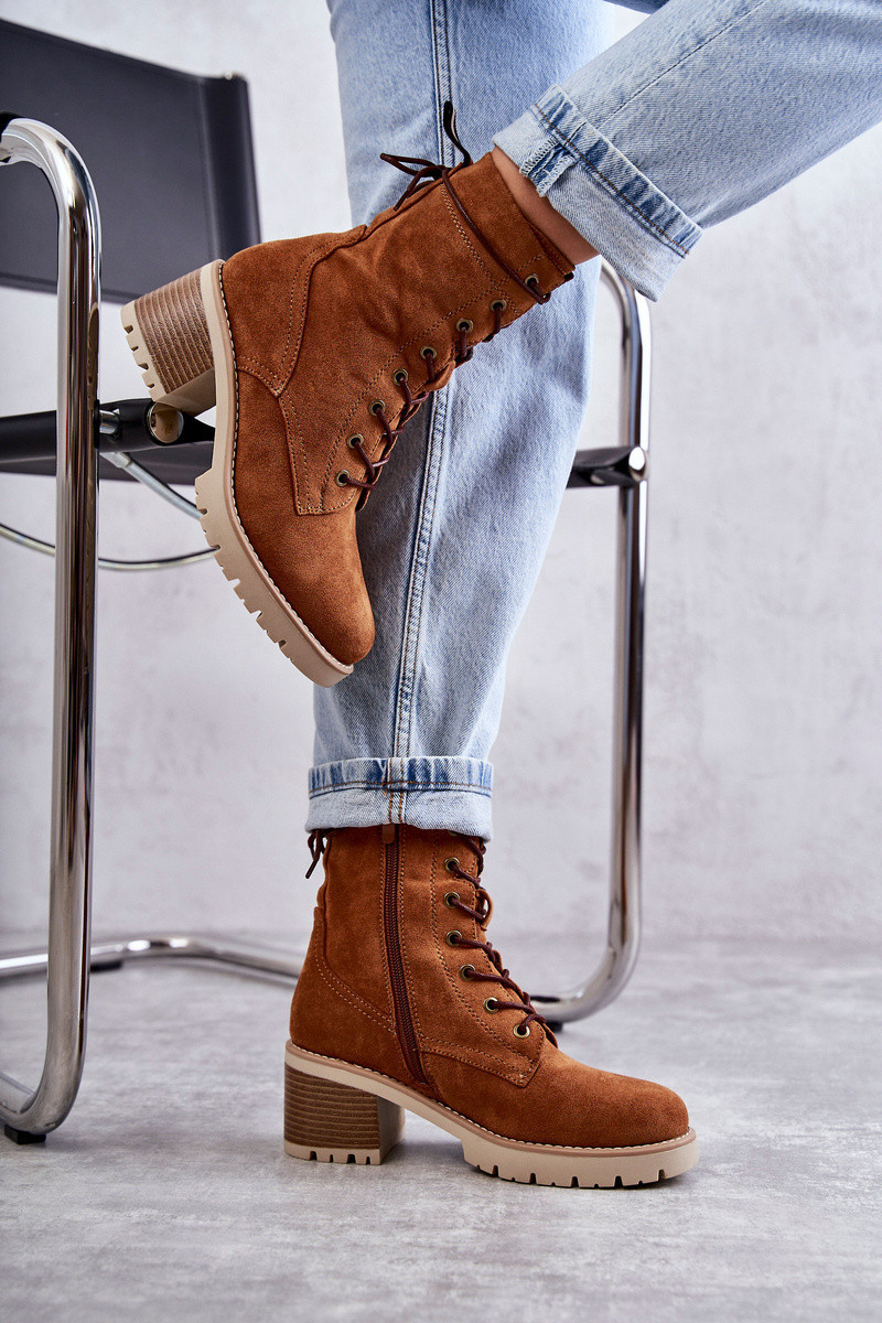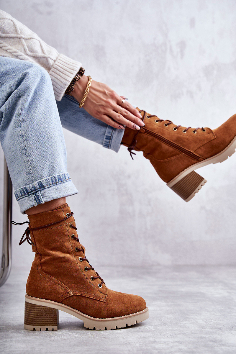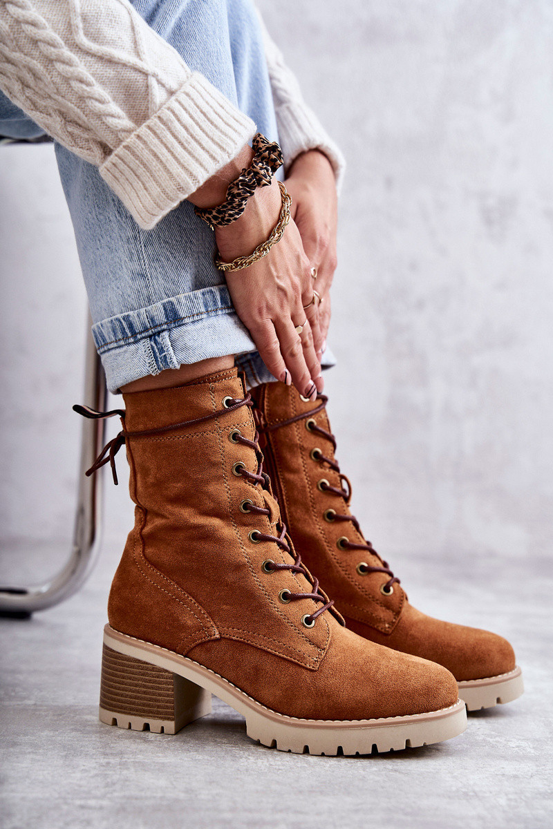 Dámské zateplené kozačky na vysokém podpatku Velbloud model 21596739 - Boto