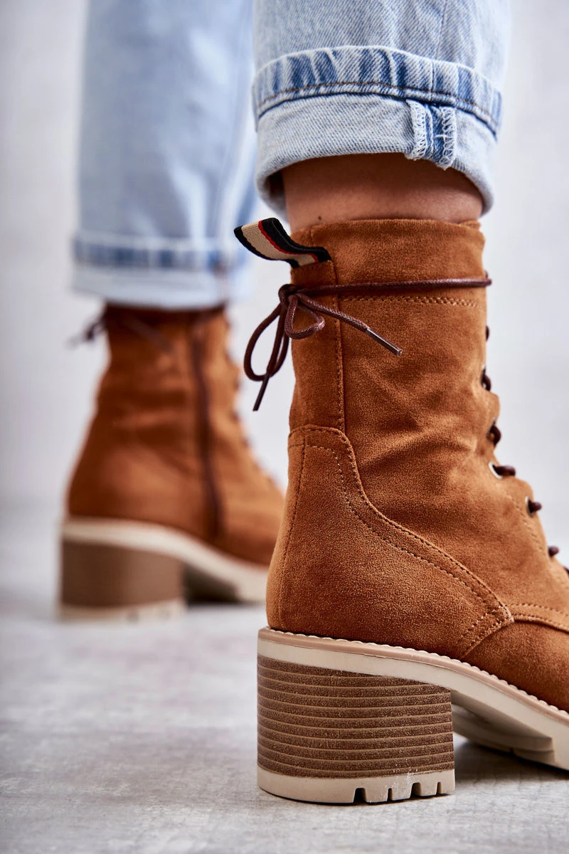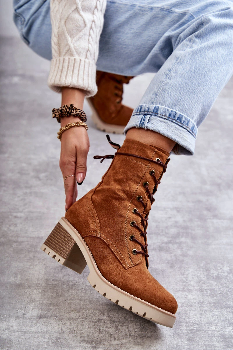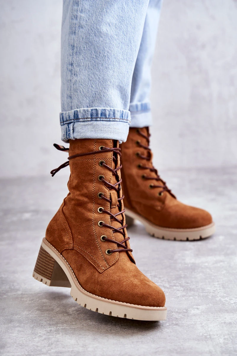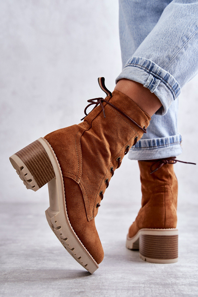 Dámské zateplené kozačky na vysokém podpatku Velbloud model 21596739 - Boto