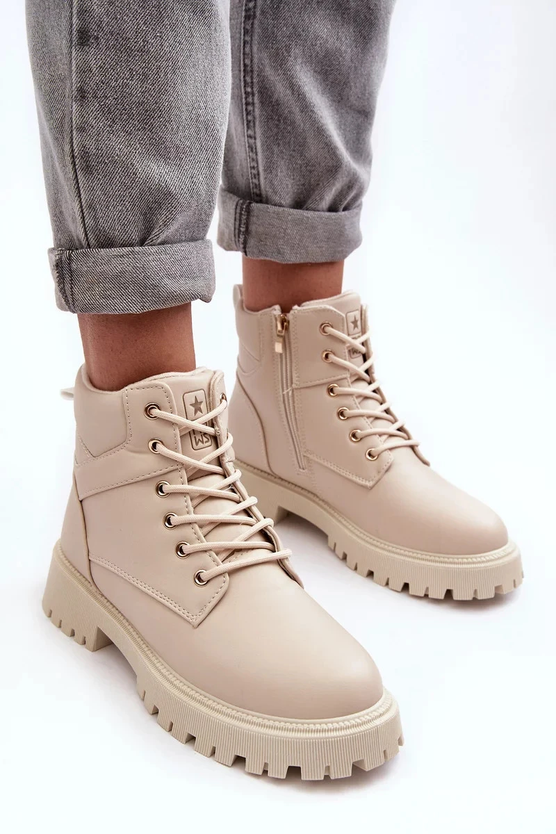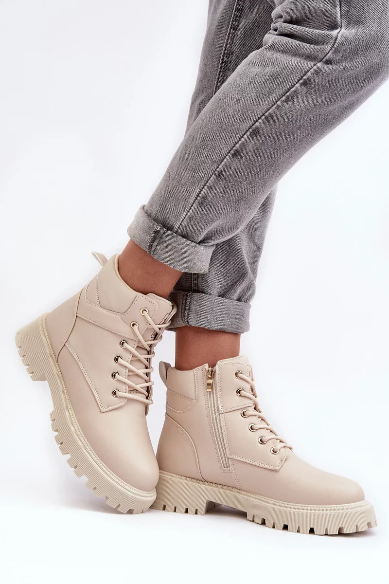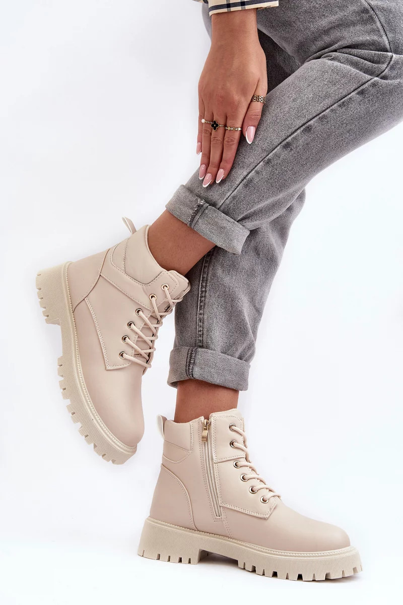 Dámské zateplené kozačky na zip Béžová Gremiva