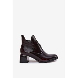 Dámské zateplené lakované kotníkové botky na blokovém podpatku s ozdobným detailem – bordó Zazoo