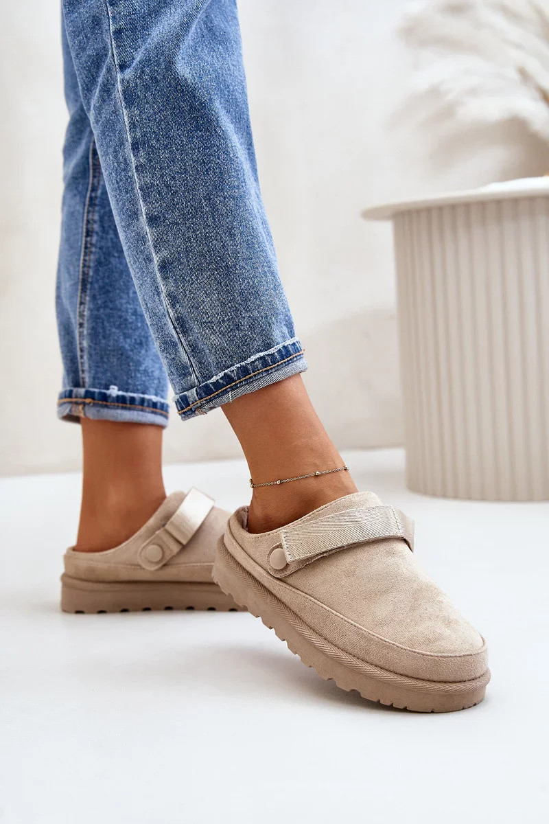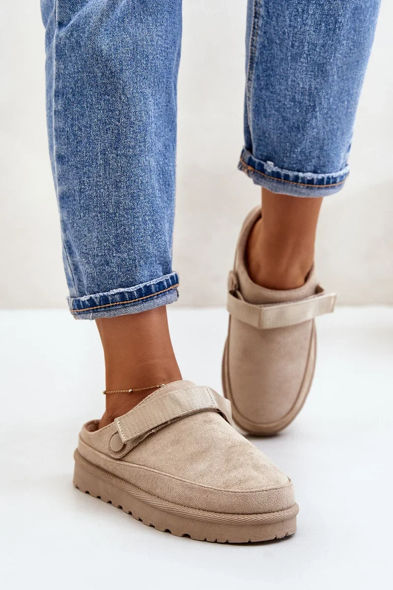 Dámské Zateplené Pantofle S Kožešinou Na Platformě Béžové Azida