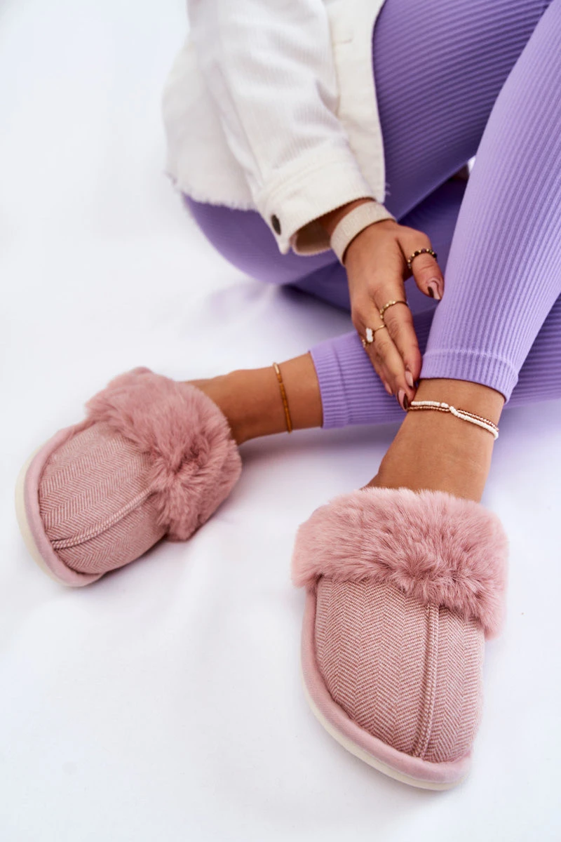Dámské zateplené pantofle s kožíškem Světle růžová model 21603693 - Boto