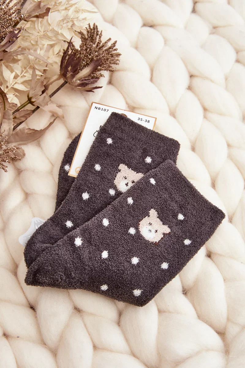 Dámské zateplené ponožky s puntíky a medvídky, tmavě šedé