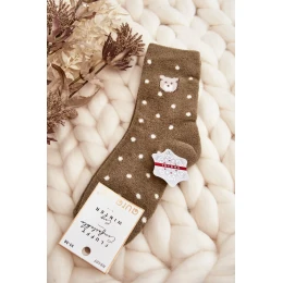 Dámské zateplené ponožky s puntíky a medvídky, zelené